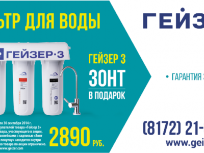 Акция действительна для покупателей товара «Гейзер 3» по цене 2 890 руб.