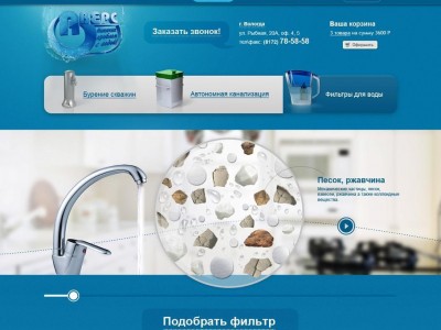Мы рады приветствовать Вас на нашем обновленном сайте. Теперь Вы можете не выходя из дома выбрать фильтр для очистки воды с доставкой его на дом, заказать звонок специалиста, задать интересующий вас вопрос, написав нам на почту. Если вы не найдете интересующий вас товар в каталоге, наши менеджеры помогут вам подобрать его и сориентируют по стоимости и срокам доставки. В разделе "Вопрос-Ответ" появятся ответы на самые часто задаваемые вопросы, а разделе "Акции" Вы всегда найдете действующие выгодные предложения. Мы ценим Ваше время и всегда рады помочь. Ждем Ваших вопросов и пожеланий.